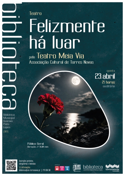 A Biblioteca Municipal Gustavo Pinto Lopes vai promover, no próximo dia 23 de Abril, o espectáculo de teatro «Felizmente há luar» pelo Teatro Meia Via, Associação Cultural de Torres Novas.