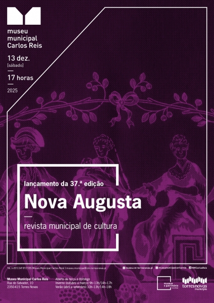 Publica-se no presente ano o n.º 37 da revista Nova Augusta, a revista de cultura do Município de Torres Novas. O lançamento ocorrerá no Museu Municipal Carlos Reis, pelas 17 horas do próximo dia 13 de Dezembro. O modelo de mesa redonda, iniciado nas últimas sessões de lançamento da revista, será o escolhido para dar voz a todas e a todos os que escrevem para a Nova Augusta, partilhando ideias e discutindo questões relacionadas com as edições locais e os estudos que lhes dão corpo. (ler mais...)