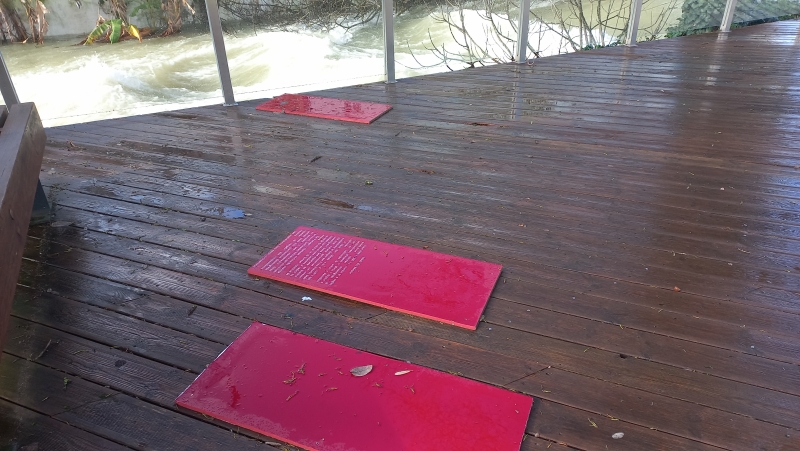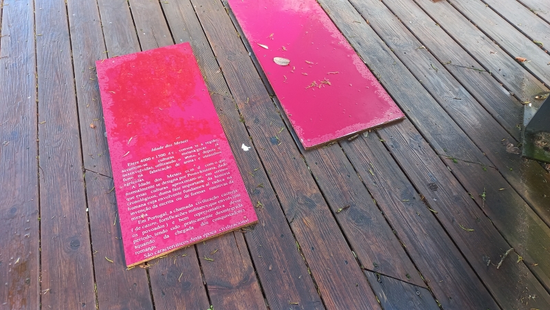 O jardim do Almonda Parque é uma bela obra. Ponto. Isso não implica que certas coisas não mereçam reparo, a começar pelos famosos decks sobre o rio, feitos de material de quinta categoria. Recorde-se que ainda o parque mal tinha sido inaugurado e já uma grande quantidade de ripas estavam partidas, tinham passado poucos dias. Ninguém foi responsabilizado pela fraude. Ao longo do tempo as tábuas vão-se partindo e vão-se remendando, quando a expectativa era que durassem um tempo razoável. Aqui há dias, mais umas quantas tábuas do deck junto ao antigo moinho tinham dado de si. E assim estiveram mais de uma semana. Até que por fim surgiu a solução. Criativa, ousada, disruptiva, uma mudança de paradigma, no fundo. Os buracos foram tapados com restos de placas de um núcleo do museu municipal instalado em 1998 e desmontado em 2023. Juntando equipamentos urbanos com arte, apoiando-se numa concepção transversal de reciclagem de materiais, a autarquia torrejana é séria candidata a um galardão do conhecido prémio IgNobel, atribuído pela Universidade de Harvard para premiar pesquisas e soluções que primeiro fazem as pessoas rir e depois pensar. Ou rir e chorar.